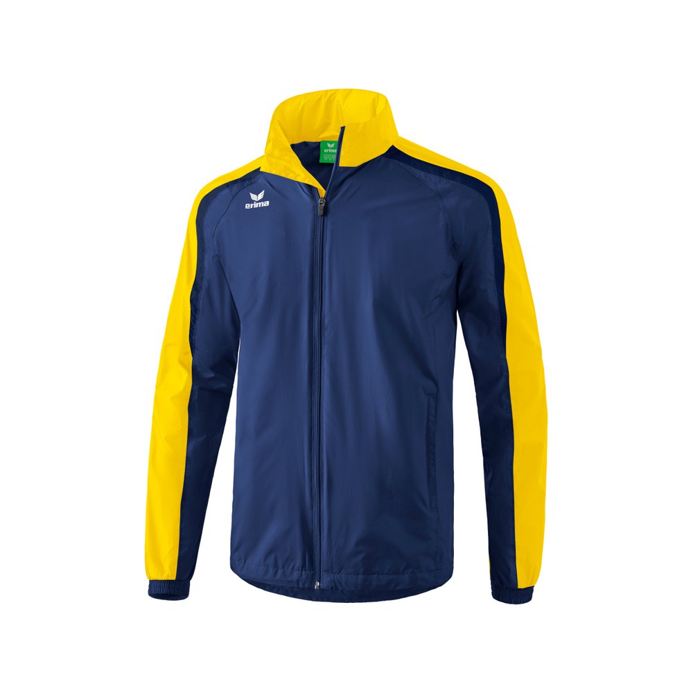 Chaqueta de lluvia Erima Liga 2.0Chaqueta ligera y resistente al viento y la lluviaMaterial superior impermeable, costuras principales soldadasCuello alto con capucha integradaForro con cremallera para un marcado óptimoBolsillos laterales con cremallera1.000 mm de estanqueidadComposición: 100% poliamidaInserciones: 100% poliamidaForro: 100% poliéster